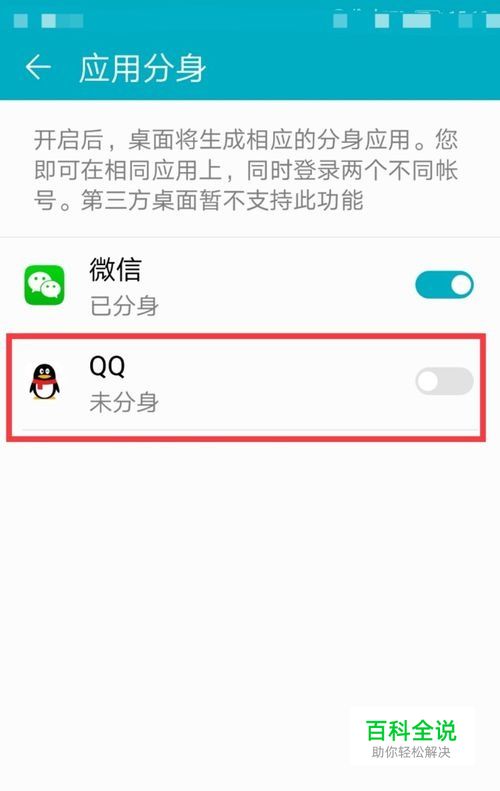 应用分身栏目内有可以分身应用的名称,我们选择”QQ“。
