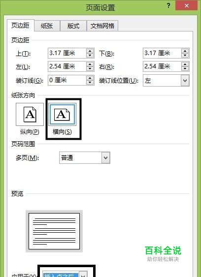这时会弹出【页面设置】,选择“横向”、“插入点之后”,点击确定。