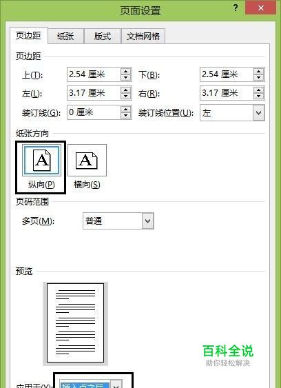 这时仍旧会弹出【页面设置】,选择“纵向”、“插入点之后”,点击确定。