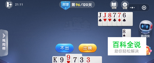最后我打出一张K,接着打出一对3一张9就过关了。