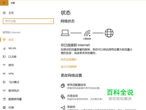 选择左侧的【状态】,在页面底部找到并点击【查看网络属性】