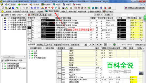 在定额含量窗口最下面补充:名称:E法兰盘 DN150 PN2.5; 单位:付;定额单价:76.51(价格根据市场价格填写);含量等于数量:3;
