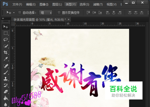 提前找好彩色背图片,把它图片拖入到字体的上方。