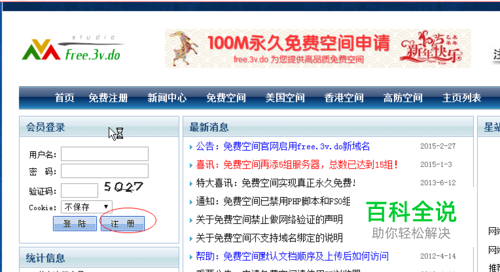 首先我们需要一个域名和空间,需要的可以到free点3v点do这里 申请一个免费的100m空间和域名