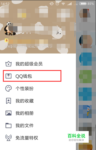 个人中心页面里选择“QQ钱包”选项