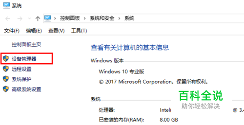 第二步,在系统面板中,点击左侧的【设备管理器】字样,如下图所示: