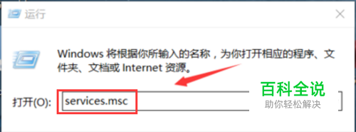 按键盘的win+R打开运行,在运行处输入 “services.msc” 点击确定。