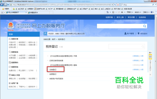 操作步骤1 登录网上办税服务厅,点击右侧“我要办事”中的“税务登记”菜单,点击“注销登记”后的[办理]按钮,进入办理页面。