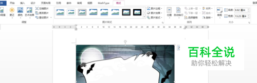 选中图片,找到格式菜单,调整图片大小,设置高度为5厘米,使Word页面横向可以放下两张图片。