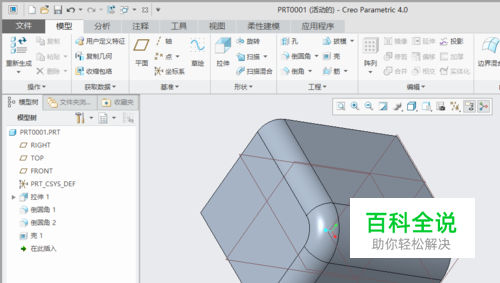 creo 把某条边倒了圆角后,后面设计时想要取消怎么办。删除倒圆角特征有时模式会显示失败,有没有其它办法。下面介绍如何利用“编辑倒圆角”命令取消倒圆角。
