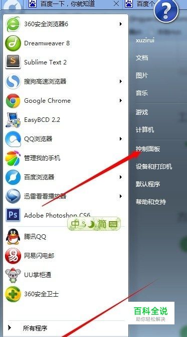打开电脑,按"开始"按钮,点击“控制面板”,如下图所示,就进入了“控制面板”的界面