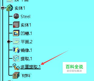 多重提取完成后,该零件的结构树上会出现一个多重提取,右键复制即可