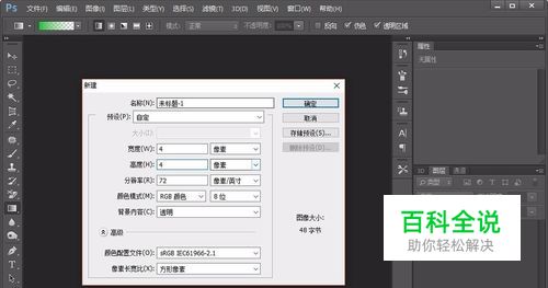 打开ps软件后新建一块画布,画布的大小设置为4*4。