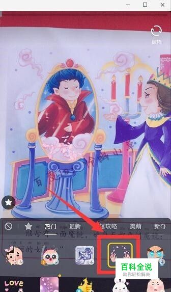在热门里找到花瓣的特效,往下拉,找到一个有两只手带花瓣的图标,点击下载,并选中它。