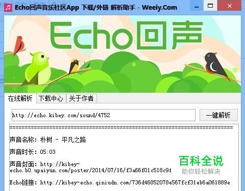 在编辑框中填入你需要解析的ECHO声音链接,即可获得: 声音名称;声音时长;声音封面;声音外链等信息!