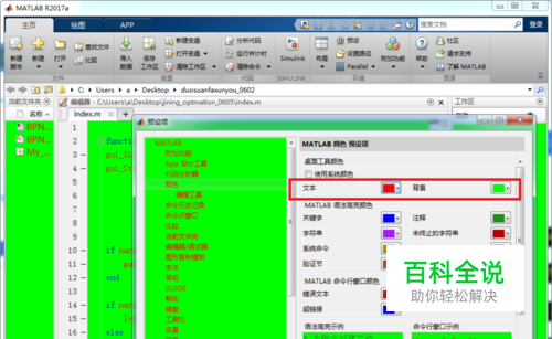 MATLAB提供了丰富的颜色设置功能,可以设置桌面工具的文本和背景色,设置不同语法颜色,设置命令行窗口颜色以及设置代码分析器颜色,学会合理使用颜色设置功能能够帮助我们分析阅读和修改程序,下面分享给大家MATLAB修改工具、语法、命令窗口及代码颜色的方法、步骤,希望能够帮助大家。