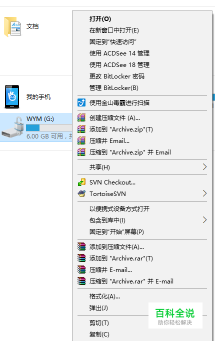 2、如果U盘上没有写保护开关,当电脑能够正常识别U盘时,我们可以对U盘进行一次尝试修复操作。右键点击U盘盘符,从弹出的菜单中选择“属性”