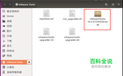 点击后,弹出VMware光驱的目录窗口,将其中.tar.gz后缀的文件复制到其他目录,例如复制到桌面。
