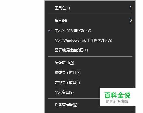 右击任务栏空白地方,选择弹出菜单中的“设置”命令: