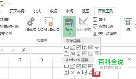启动excel2013,单击【开发工具】--【插入】。