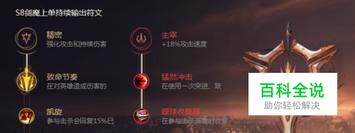 如上所述暗裔剑魔的伤害大多来源于普通攻击,所以符文里带些攻速是很不错的,不过也不能全带攻速吗,因为那样就不好补刀了,为大家搭配了这套攻击力与攻速混合符文:红色攻击力*9、黄色固定护甲*9、蓝色魔法抗性*9、大精华攻击速度*3。