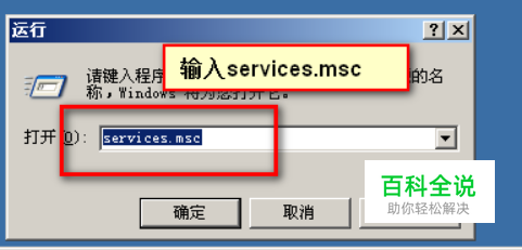 然后设置winServer2003 服务端,首先在桌面环境下,按下快捷键win +R 。调出运行窗口。运行窗口处输入services.msc。按下回车键。