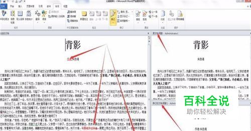 打开《背影2》就可以看到2个版本的文档的修改内容了。