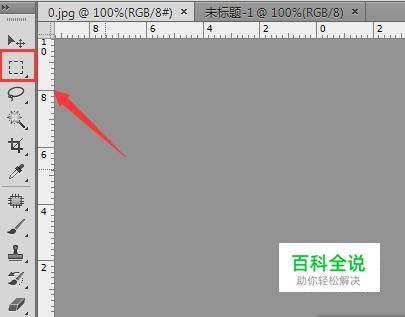 打开图片之后我们先讲一个文件,然后在工具箱内找到矩形选框工具,如图所示: