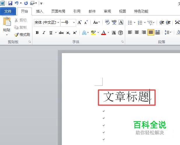 之后我们在文档中输入一个文章标题,如图所示;