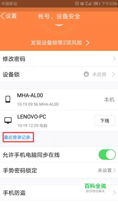 弹出的界面,我们点击最近登录记录;