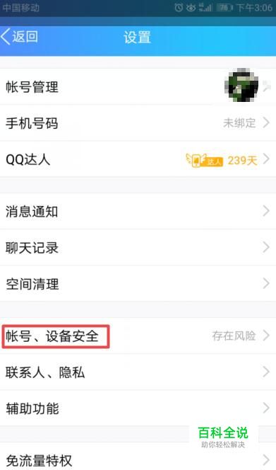 弹出的界面,我们点击账号、设备安全;