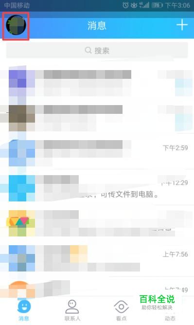 首先,我们打开我们的手机QQ,然后我们点击左上角的头像;