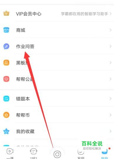 进入之后,在 “我的”页面点击“作业问答”,进入下一页面,如图所示。