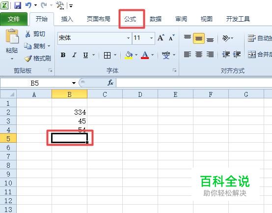 首先,我们打开我们的电脑,然后我们打开我们电脑上面的excel,之后我们在单元格中输入一些数字,然后我们选中图示中的单元格,之后点击公式;