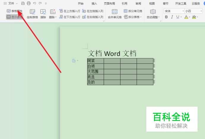 接着再找到表格属性。如图。
