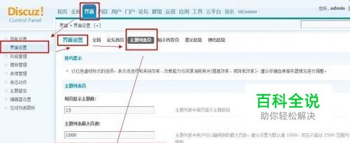 登录后台后,在网站的后台找到 界面 按钮,下的界面设置,点击主题列表页按钮,出现设置界面,首先一般将“左侧版块导航宽度”设置为0