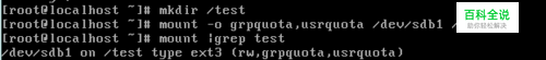 然后创建一个目录并把刚才格式化的分区挂在上去并开启文件配额,并设置好自动挂载 (开启文件配额就是要在挂载的时候加上usrquota和grpquota这两个参数,一个代表用户的配额,一个代表组的配额)