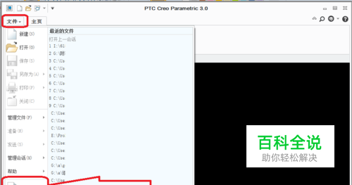打开Creo界面,点击左上角的“文件”,然后点击“选项”。