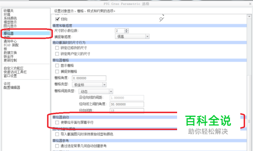选择左侧的“草绘器”设置,在右侧菜单栏找到“草绘器启动”选项。