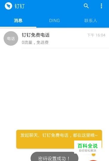 OK,钉钉注册成功,并成功设置钉钉个人资料和密码,然后进入钉钉个人主界面,如下图所示。