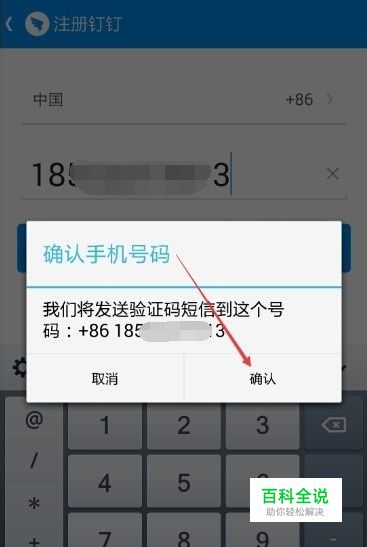 点击后,钉钉弹出确认手机号码对话框并提示会往手机里发送验证码,点击是,如下图所示。