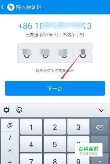 在注册钉钉输入验证码界面上,我们输入手机接收到的验证码,然后点击下一步,如下图所示。