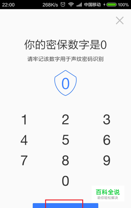 在选择了密保数字之后,在以后的声纹验证中,该密保数字都是要使用的,但是该数字我们必须牢记,因为在验证时该数字是默认不显示的,设置完毕以后,我们点击“ 我记住了”按钮。