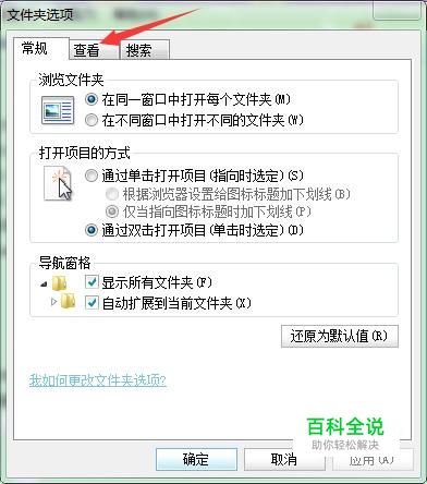 弹出文件夹选项对话框,我们在选择查看选项卡
