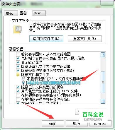我们滑动下方滑块,选择隐藏文件和文件夹下的显示隐藏的文件、文件夹和驱动器选项
