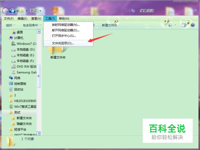 我们打开有隐藏文件的文件夹,再点击菜单栏工具—文件夹选项