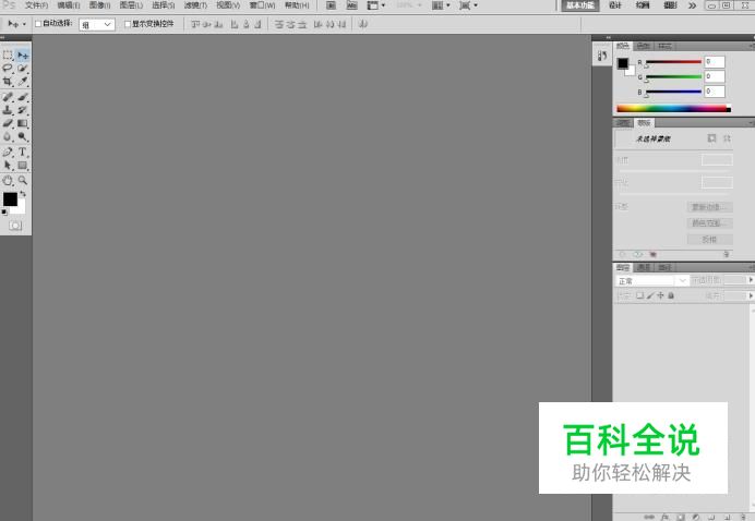 首先打开ps软件:鼠标右键>打开,呈现软件的操作见面。横向从上至下为菜单栏、工具选项栏。纵向左边为工具箱,中间深灰色为图像窗口,右边为调板