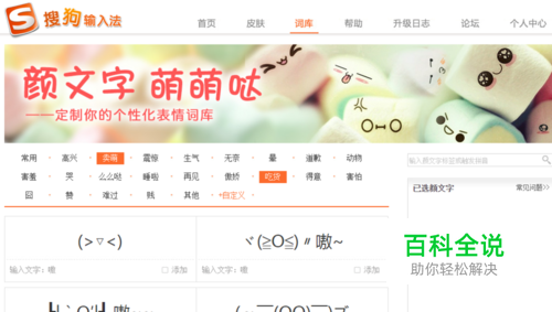 进入搜狗输入法官方网站,去词库里寻找颜文字。如下图