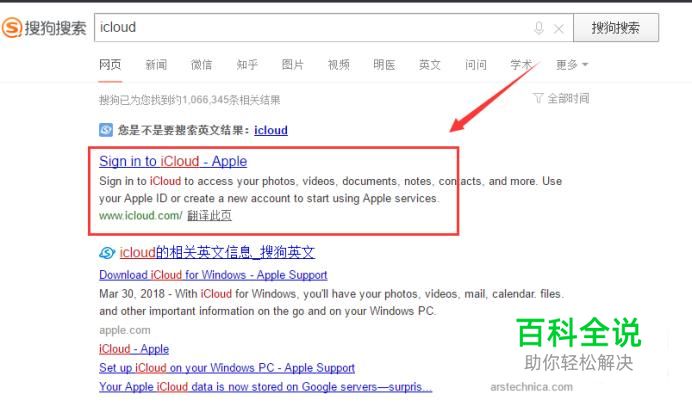 通过搜索工具进入iCloud官网。