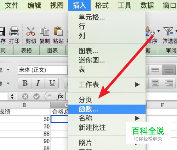 点击插入菜单下的‘函数’。